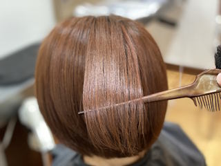 髪型はそのままに、毛量をしっかり減らすことが出来るように、毛量調整を行っております。